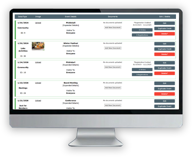 Streamline your organization’s schedule with Infinity’s comprehensive calendar and event management tools. Whether you are posting a single, or recurring, meeting notice - or a promoting a major conference with a dedicated landing page, our platform provides flexibility in its display, details, hosted documents, and online registrations using the payment options you select.